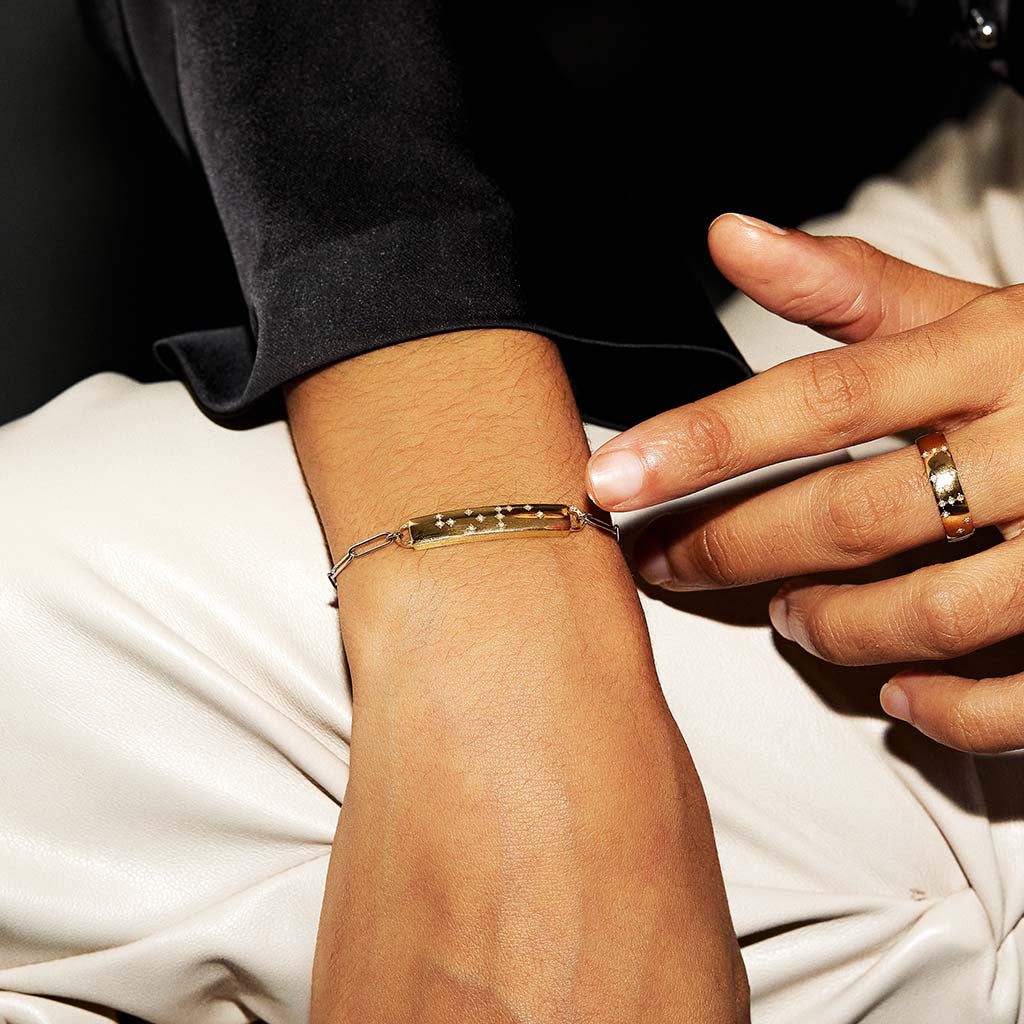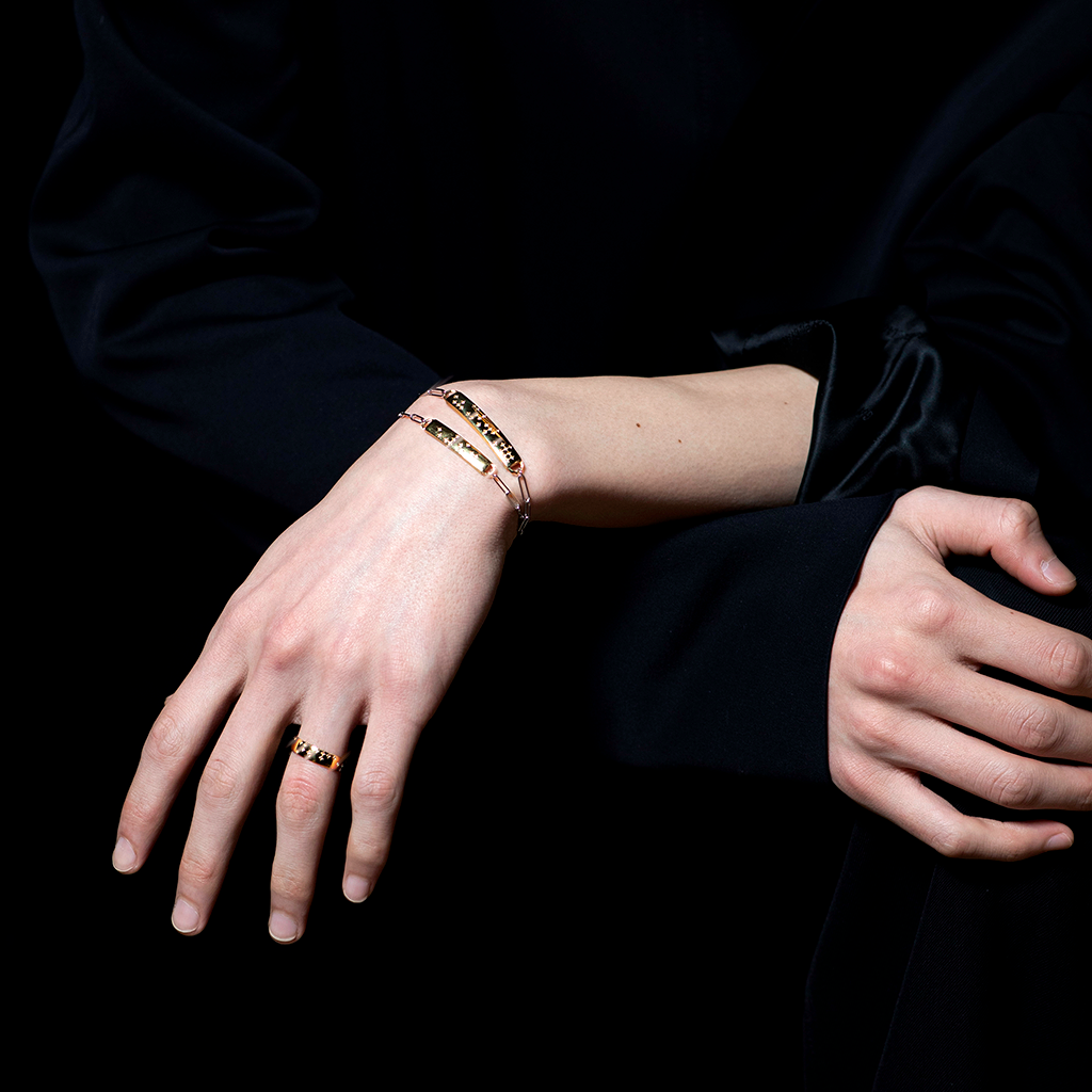 Rooted in universal design, Milamore's Diamond Braille pieces keep your inspirations close. Crafted in customizable 18K solid gold or Platinum 900, natural round-cut diamonds form readable Braille—spell out a message that speaks to you.