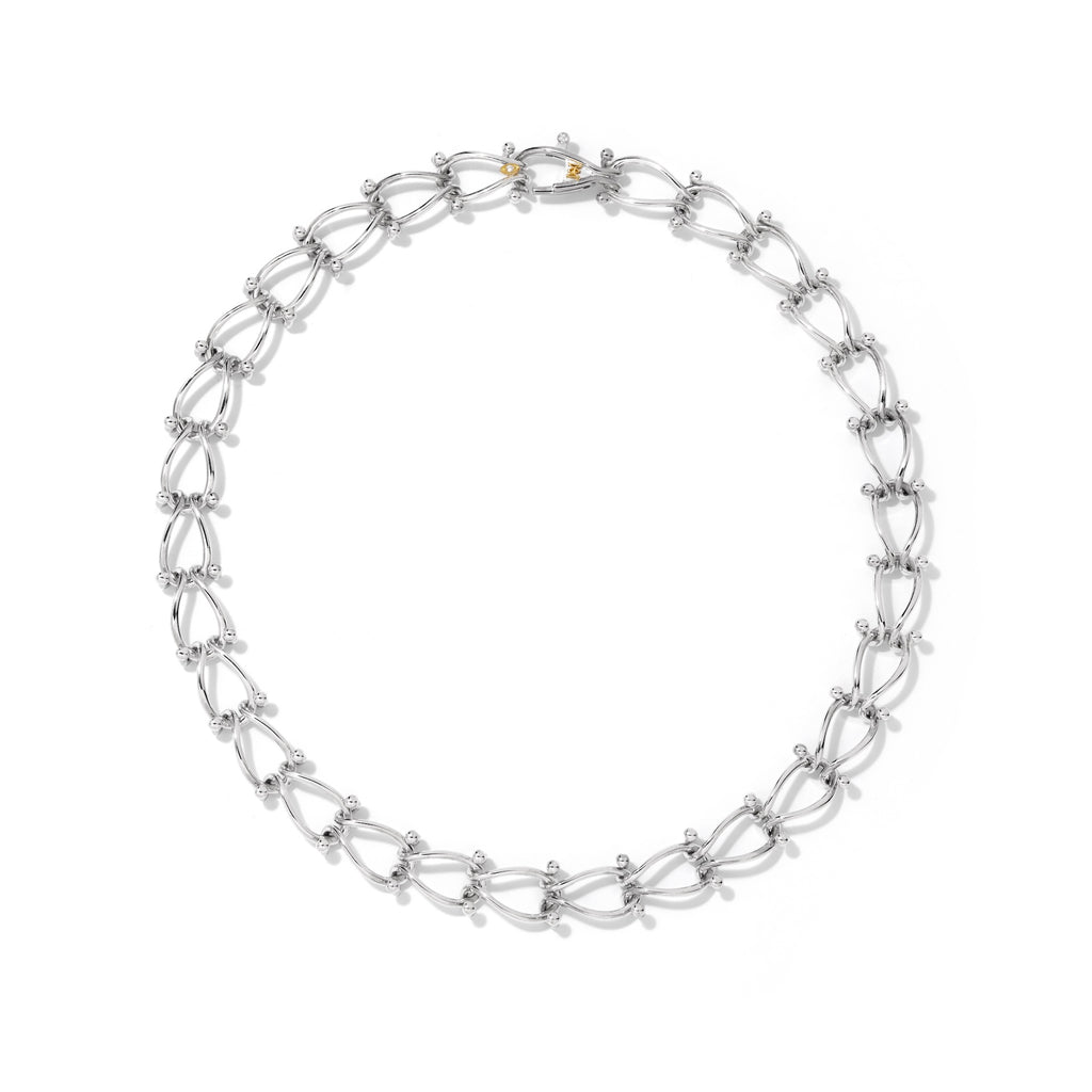 Solid in silver, fluid in motion— the HASSOU Puzzle Chain reimagines an industrial component as a modular structure for fine jewelry.
