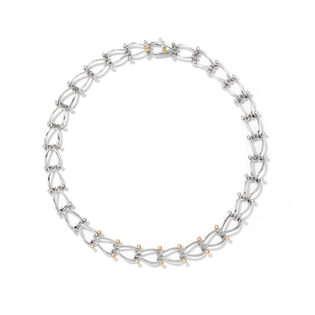 Solid in silver, fluid in motion— the HASSOU Puzzle Chain reimagines an industrial component as a modular structure for fine jewelry.