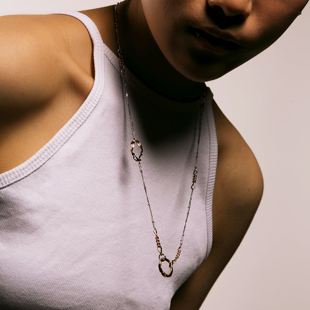 Bold. Edgy. Limitless. The Duo Chain Collection reimagines antique pocket watch chains in contemporary 18K solid gold. Blending modern and vintage elements, each piece features clasps that double as pendants, offering versatile styling—whether as a statement piece or a subtle accent.