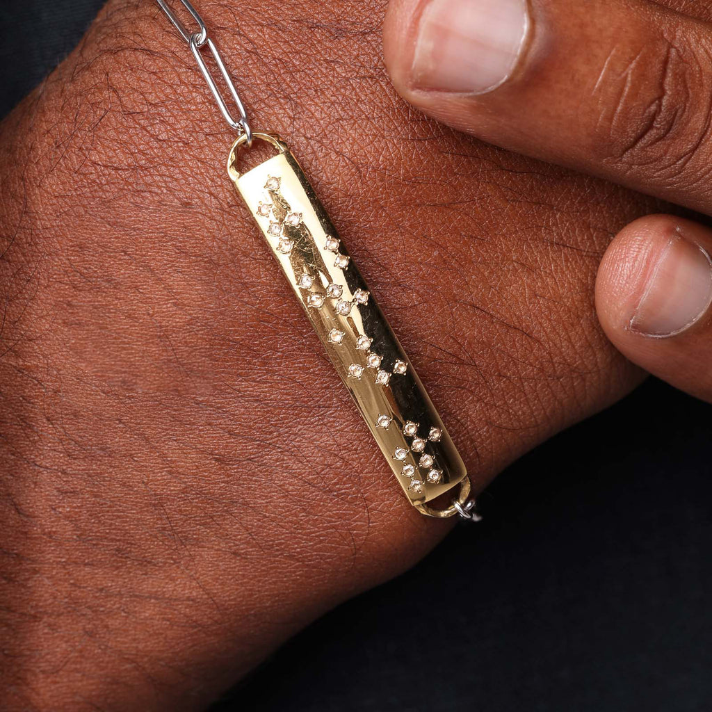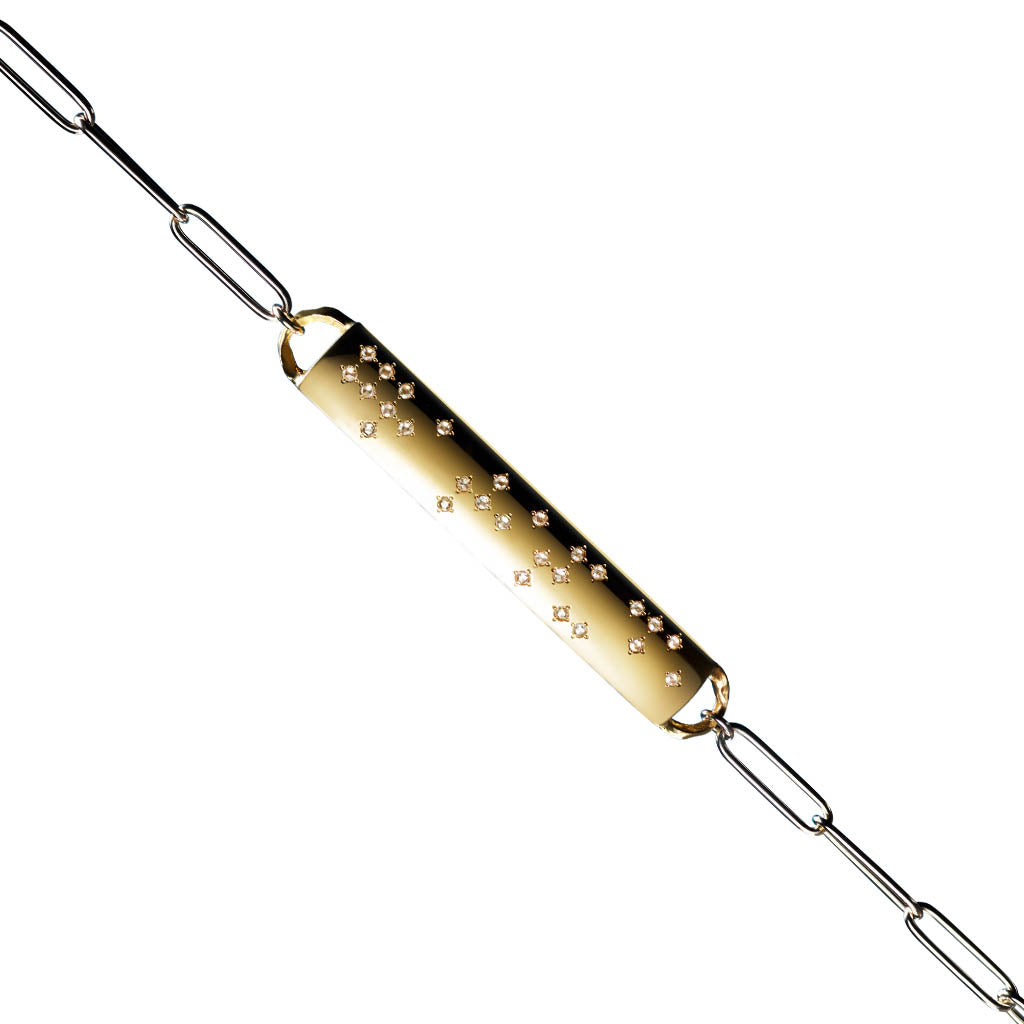 Rooted in universal design, Milamore's Diamond Braille pieces keep your inspirations close. Crafted in customizable 18K solid gold or Platinum 900, natural round-cut diamonds form readable Braille—spell out a message that speaks to you.