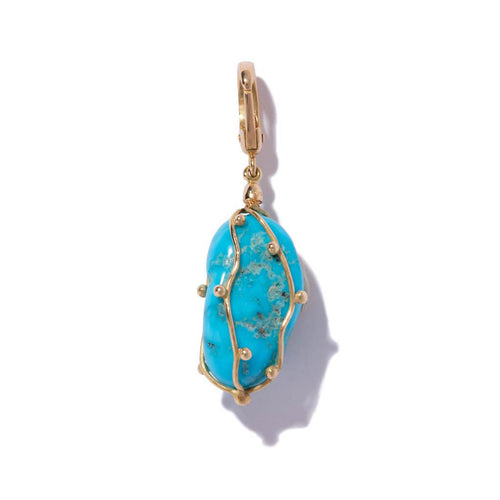 a petite pendant of pear-shaped Natural Blue Topaz and Diamond forms an asymmetrical heart shape, set in a solid 18kt gold chain. Celebrating the unique nature of love