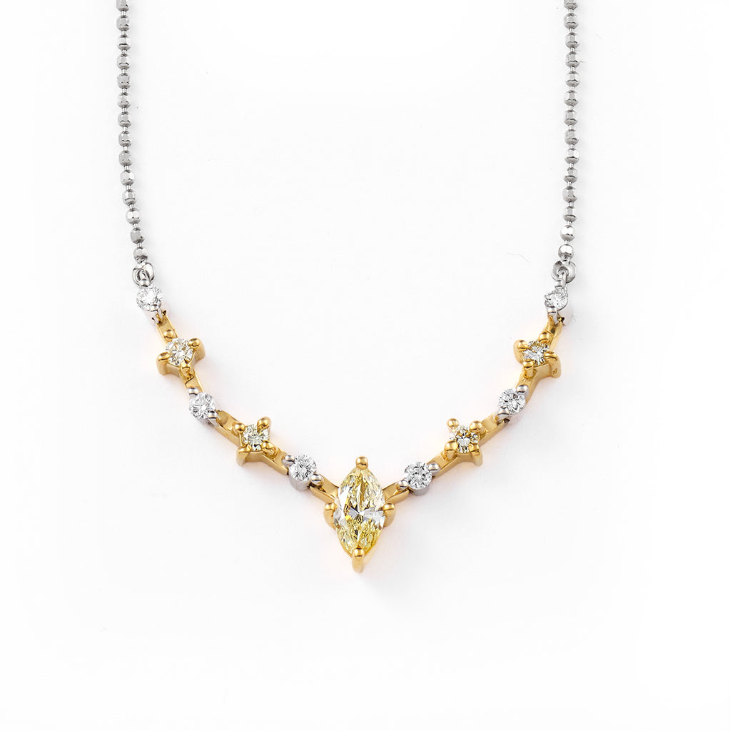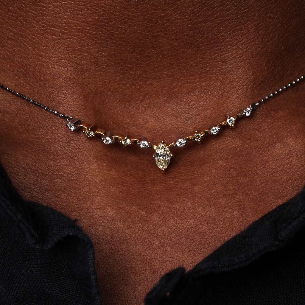 Inspired by vintage cross settings, it showcases star-like details on the back, with mixed diamond sizes and a marquise centerpiece for a radiant shimmer.