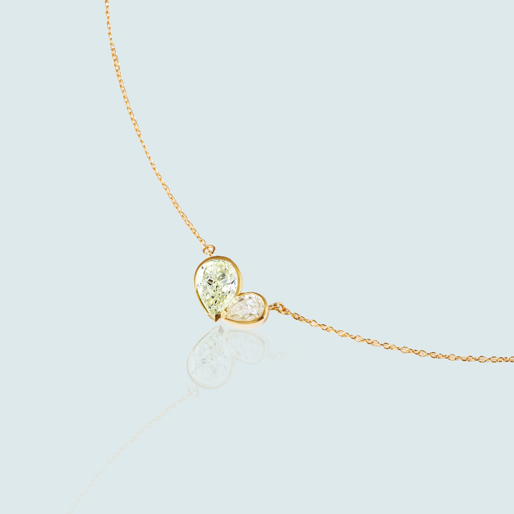 A modern take on the Toi-et-Moi setting, featuring two pear-shaped diamonds in an asymmetrical heart—celebrating the unique nature of love.