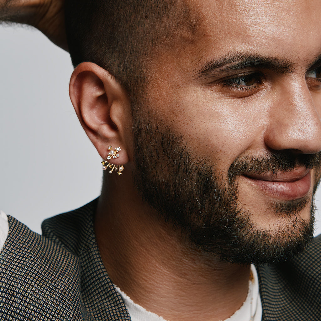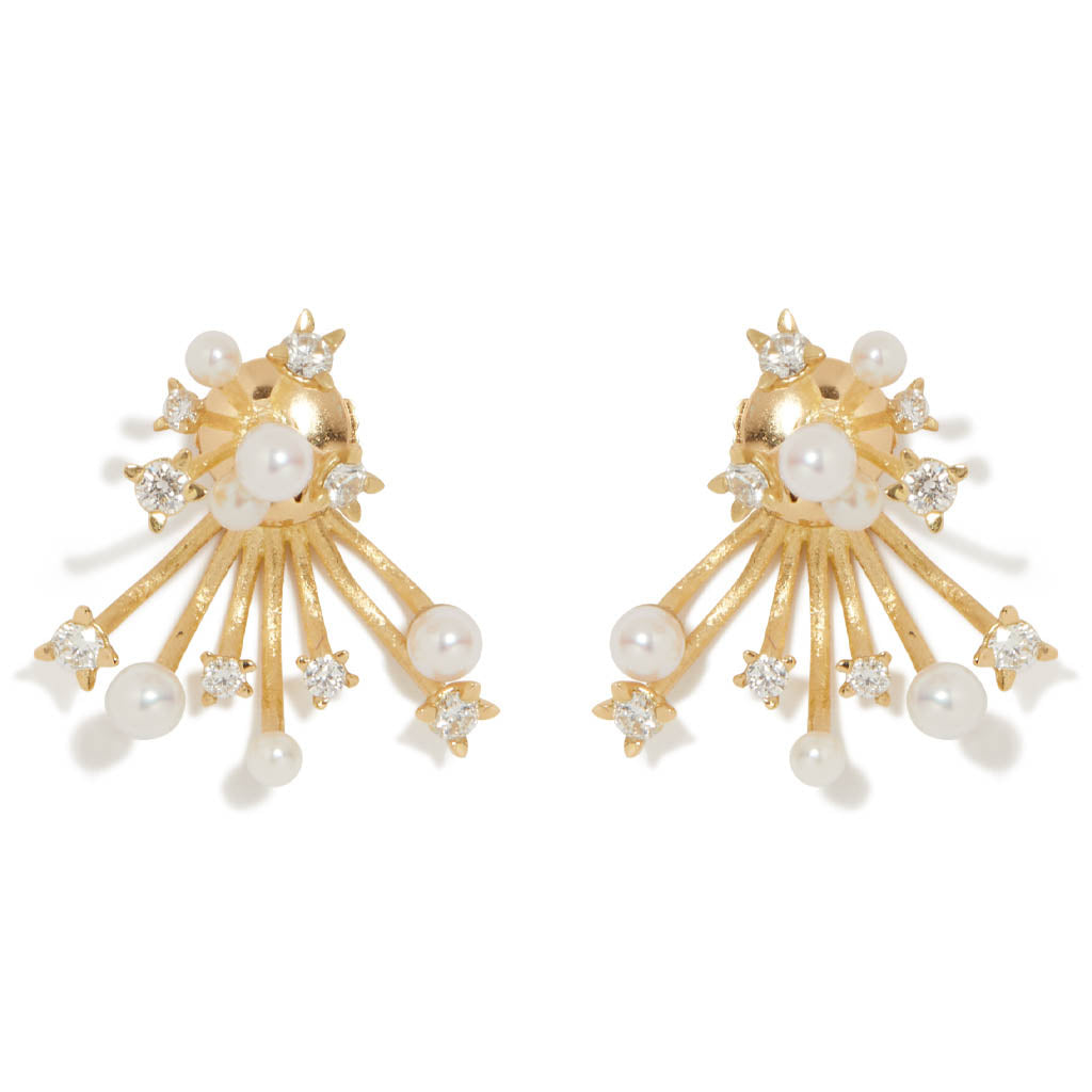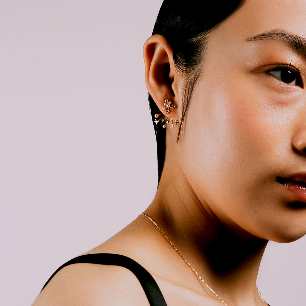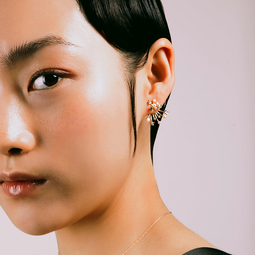 Our Hanabi collection is made to remind you to celebrate yourself and to ignite what sparks you up! These earring represents the spark of the firework as it moves across the sky. They can be worn casually or formally to add a unique look to your collection. This jacket hugs your ear lobe with pearls and diamonds which adds a truly special look. Celebrate yourself every day, with what ignites you and lights you up!