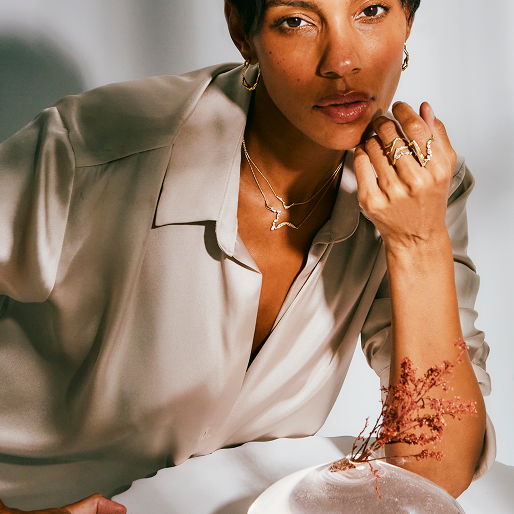 Mended, not broken. Kintsugi—an ancient Japanese technique of repairing with gold—transforms breakage into beauty, flaws into strength. Milamore reimagines this philosophy through fine jewelry, where each crack becomes a golden thread—conceptually mending the wearer.