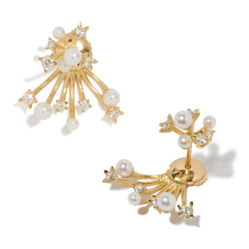 Designed to represent the fireworks celebration in Japan. A combination of Akoya pearls and diamonds with 18kt gold fasteners represents the sparks