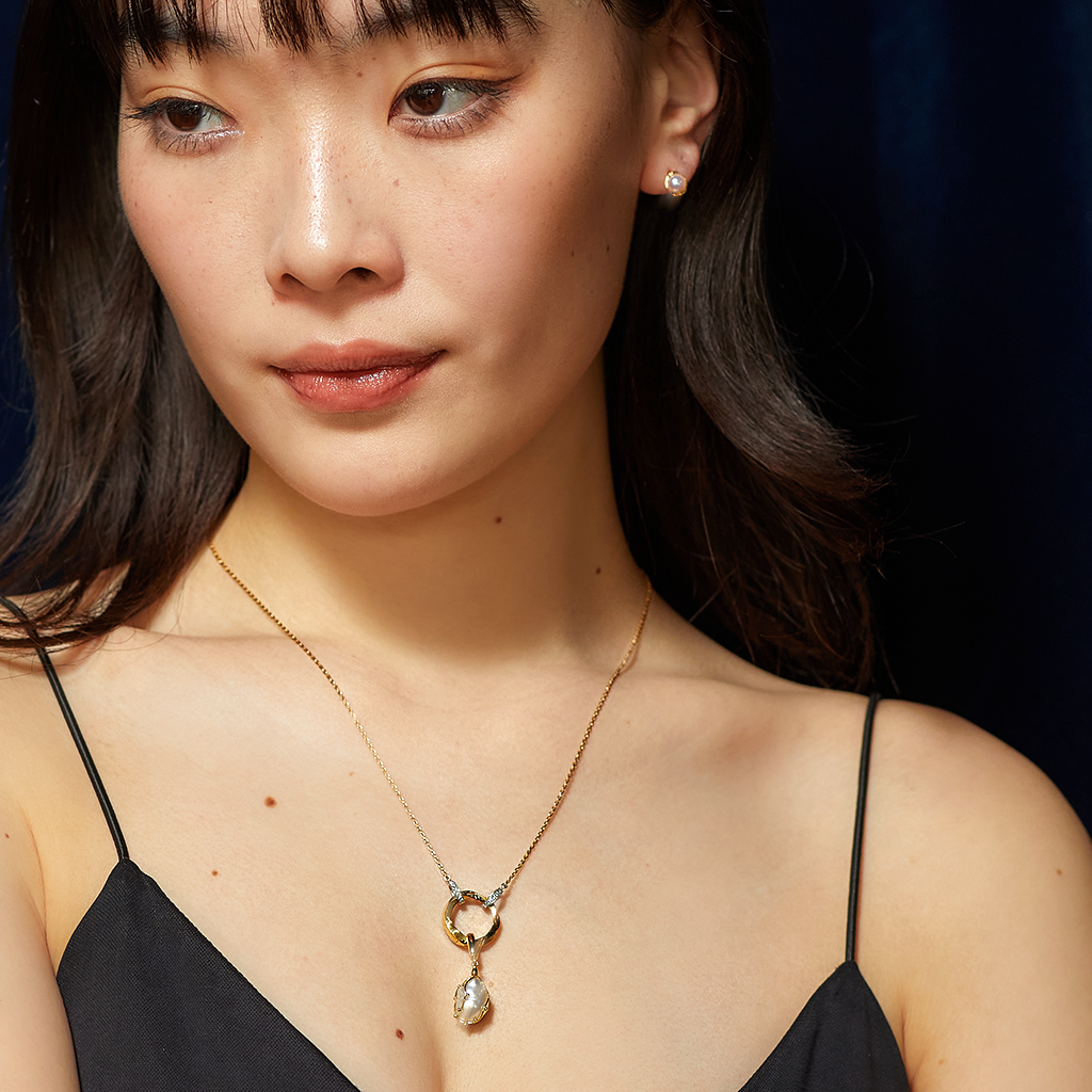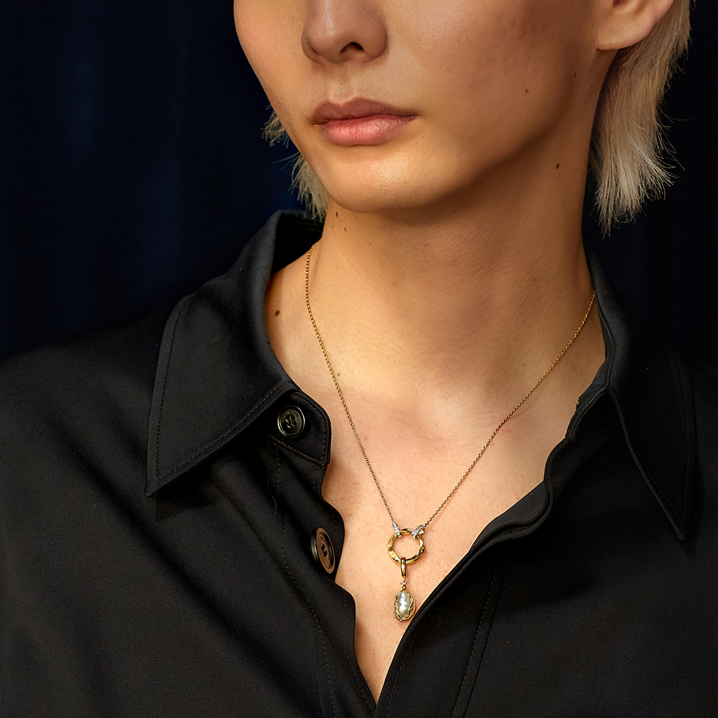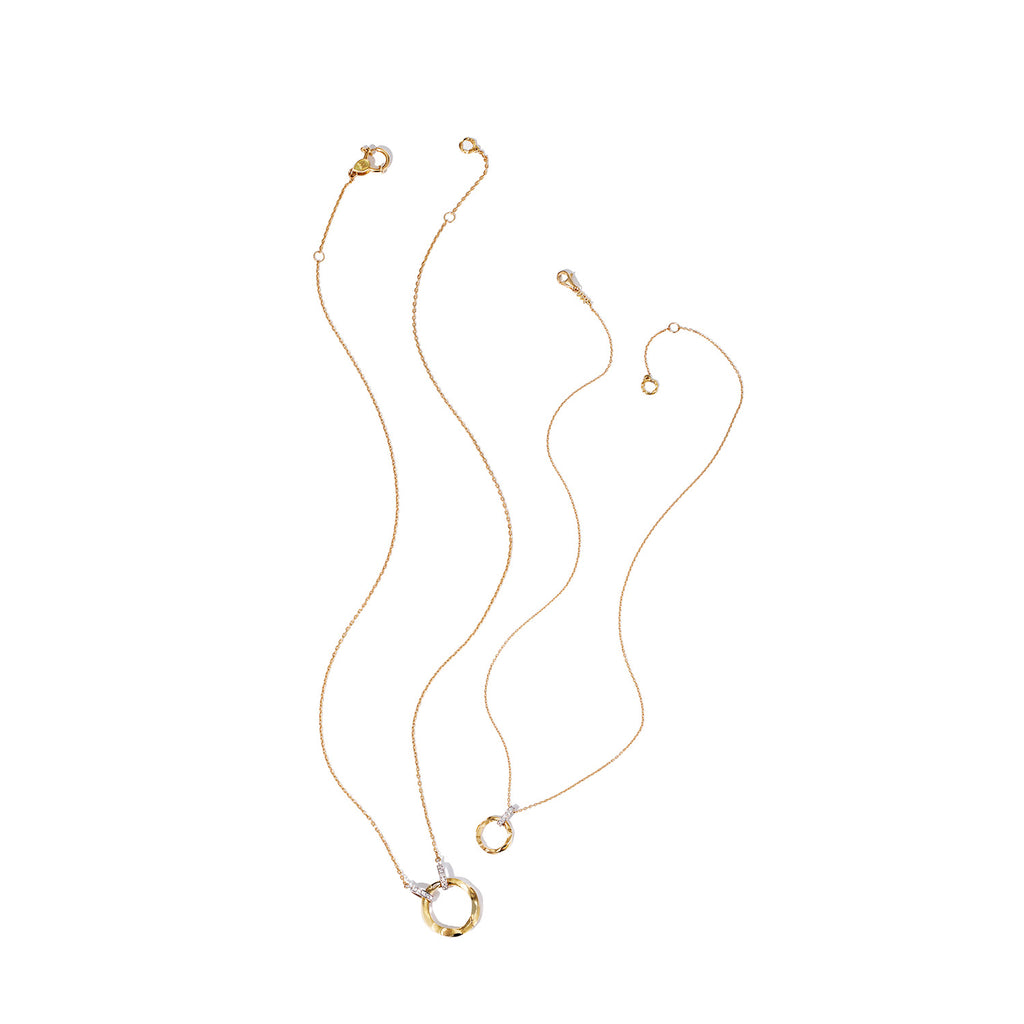 Our En open pendant features a stunning circle design with Kintsugi details. The circle is suspended by diamonds and can be opened to add your personal charm or one of our original designed charms. This versatile pendant is the perfect statement piece that blends elegance and strength, just like the philosophy of Kintsugi.
