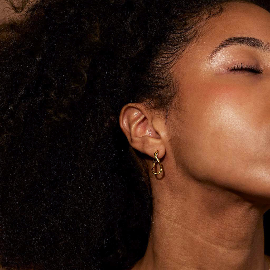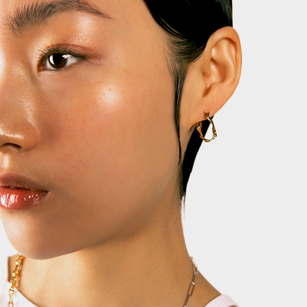 A modern take on the classic hoop, blending Kintsugi details with the fluidity of the Möbius strip. Matte and polished finishes enhance the design.