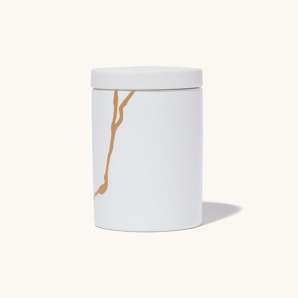 The fragrance is housed in a handmade Kintsugi-inspired porcelain jar that can later be repurposed as a stylish storage solution.