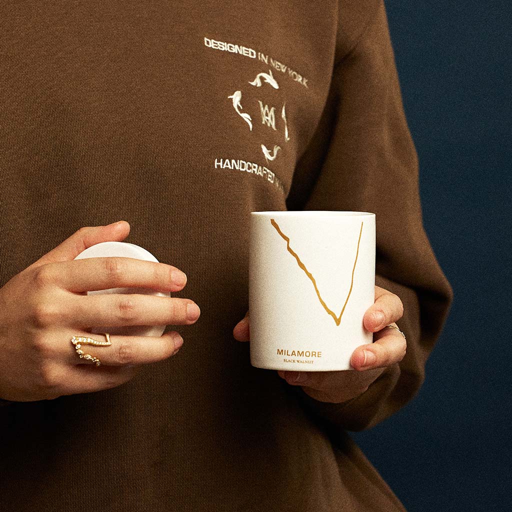 The iconic scent is inspired by the Black Walnut tree native to upstate New York. All of our candles are hand-poured in small batches in California.